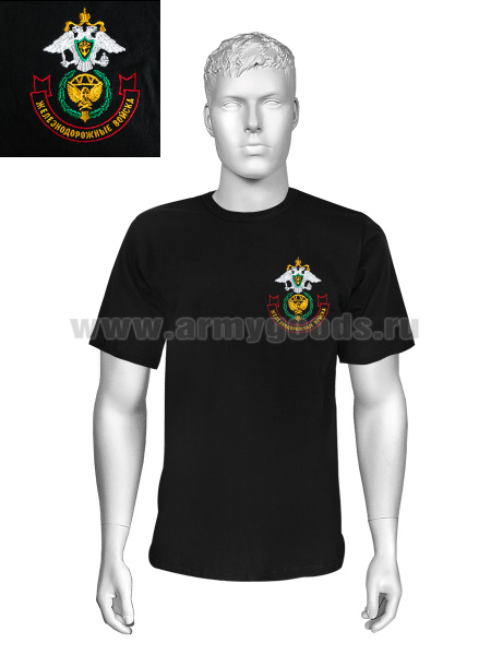 Футболка с вышивкой на груди Железнодорожные войска, черн.