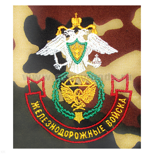 Футболка с вышивкой на груди Железнодорожные войска, зел. КМФ