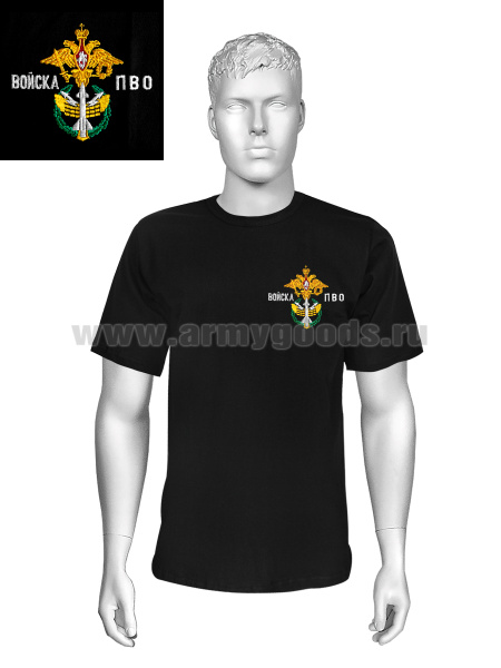 Футболка с вышивкой на груди Войска ПВО (эмблема), черн.