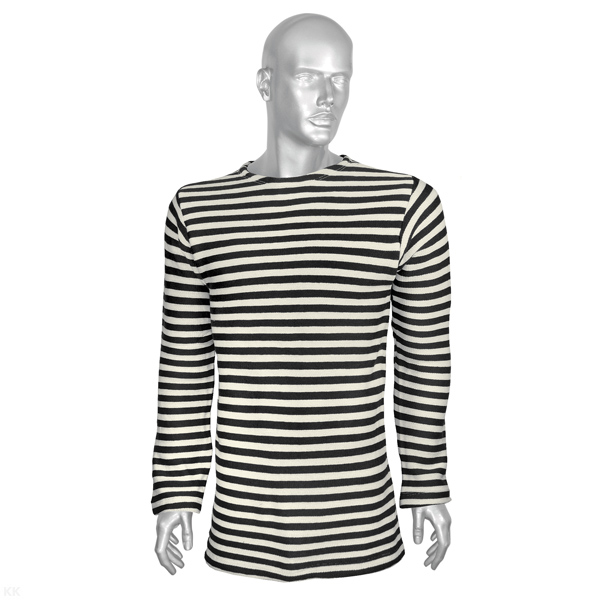 Главная-01 ОДЕЖДА-0145 ТЕЛЬНЯШКИ ЗИМНИЕ-Тельняшка зим. п/ш двойной вязки черн. (НЕБЕЛЕНАЯ) с кремовой полосой р-ры с 62
