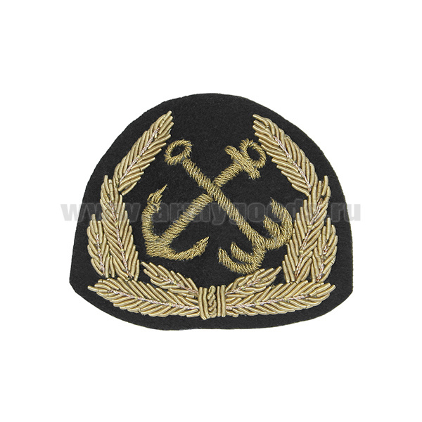 Кокарда канит. (золото 3%) Морской флот (якорь, глобус, 8 листиков, без звезды)