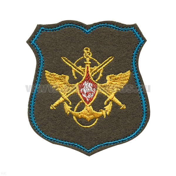 Шеврон вышит. Знак принадлежности к МО (оливковый с голубым кантом) щит