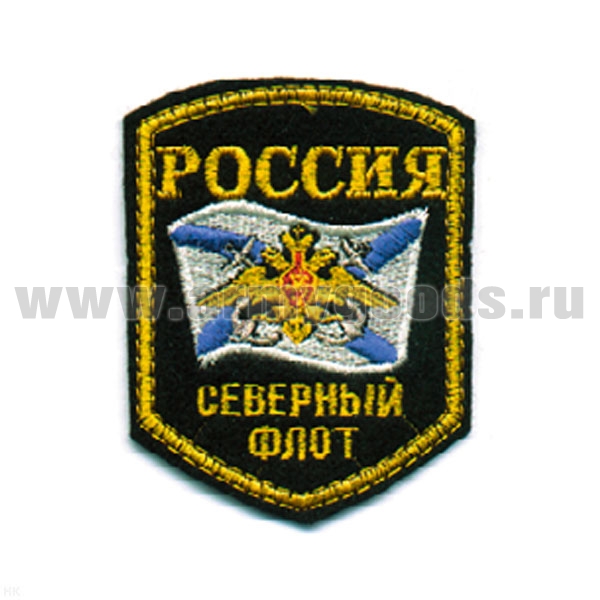 Главная-16 ВЫШИВКА (шевроны, нашивки, вымпелы)-Шеврон вышит. Россия СФ (5-уг. с флагом и орлом) люрекс