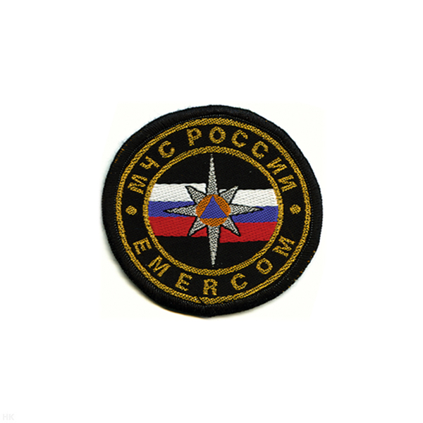 Шеврон тканый МЧС России EMERCOM (кругл.) мал. черн.