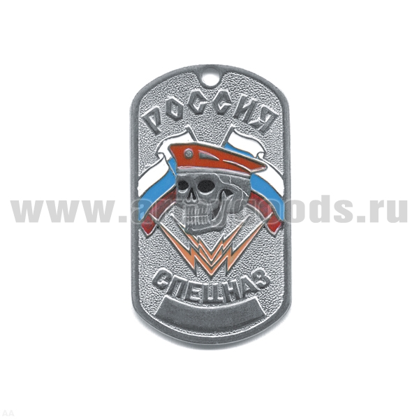 Жетон (нерж. ст., эмал.) Россия Спецназ (череп в крап. берете)