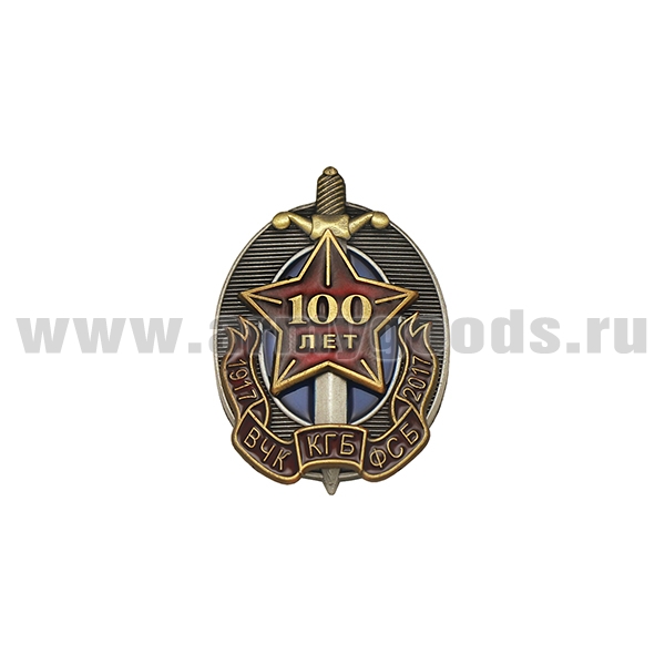 Значок мет. 100 лет ВЧК-КГБ-ФСБ 1917-2017 (овал с мечом)
