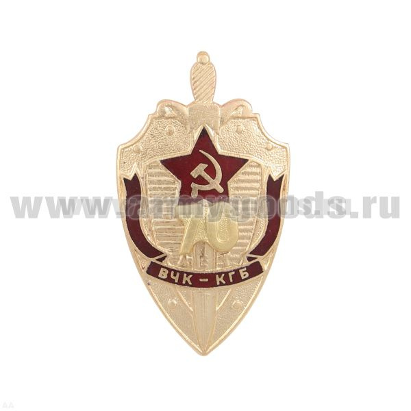 Значок мет. 70 лет ВЧК-КГБ (щит) с накладными золотыми цифрами