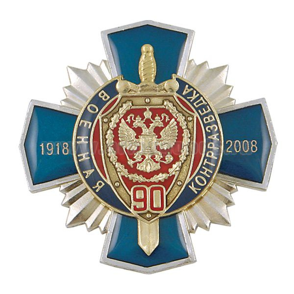Значок мет. 90 лет военной контрразведке 1918-2008 (синий крест с накладкой, смола)