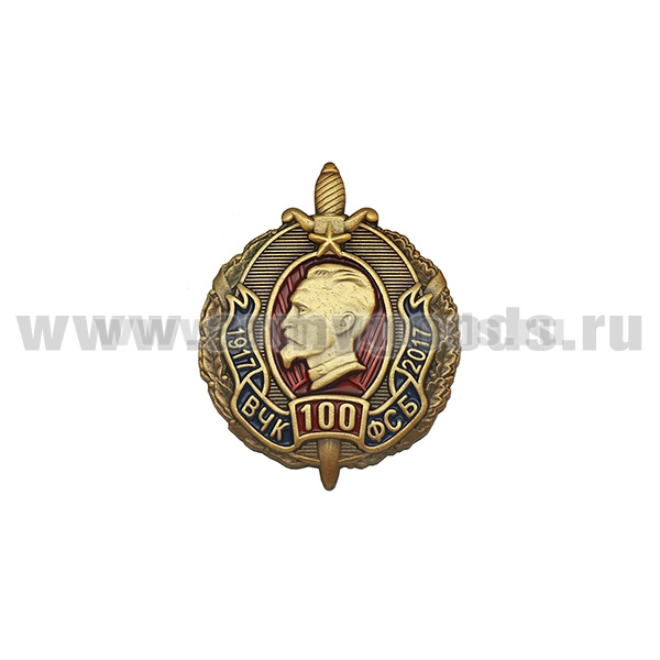 Значок мет. 100 лет ВЧК-ФСБ 1917-2017 (овал с мечом в венке с портретом Дзержинского)