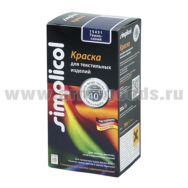 Главная-26 СОПУТСТВУЮЩИЕ ТОВАРЫ-2601 ХОЗТОВАРЫ-Краска для текстильных изделий Simplicol темно-синяя (упаковка 750 гр) ИСТЕК СРОК ГОДНОСТИ