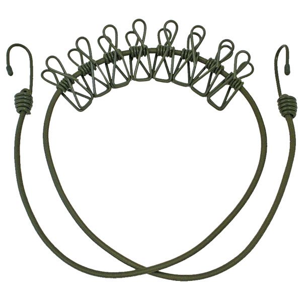 Веревка бельевая (резинка) с крючками и прищепками (110 см)