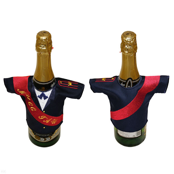 Рубашечка на бутылку сувенирная вышитая Мисс ГАИ (синяя)