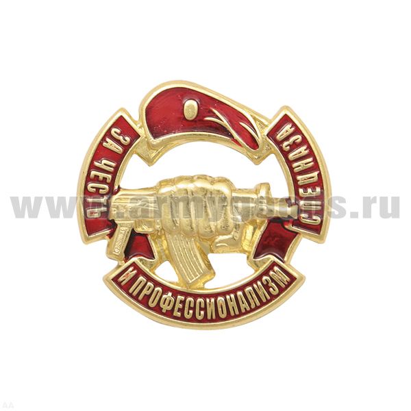 Значок мет. За честь и профессионализм спецназа (кулак с автоматом, краповый берет)