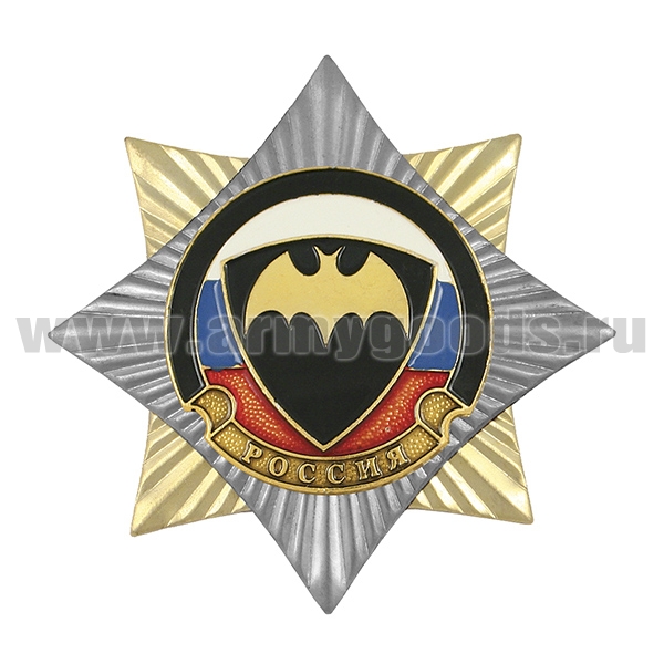 Значок мет. Орден-звезда ВВ кулак с автоматом на звезде