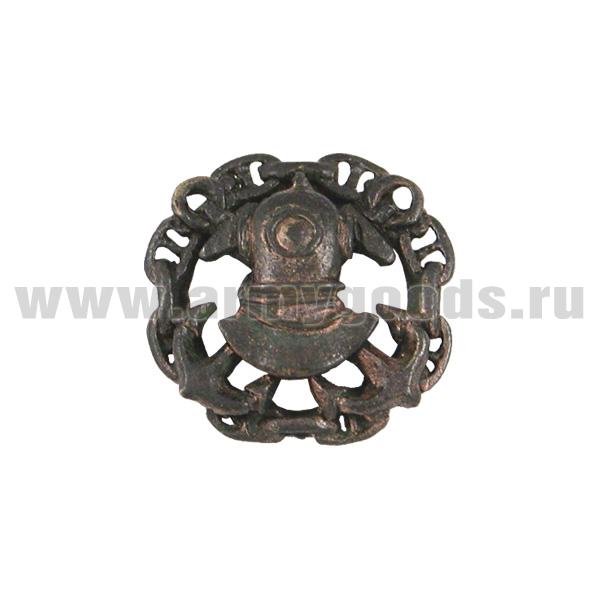 Значок мет. Водолаз на 2 якорях, в цепи (бол. чернен.)