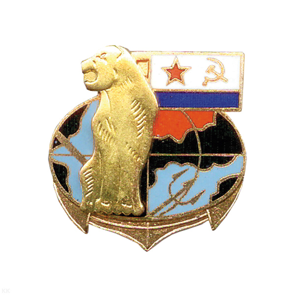 Значок мет. Овал с накладной пантерой (с флагом ВМФ СССР) гор. эм.