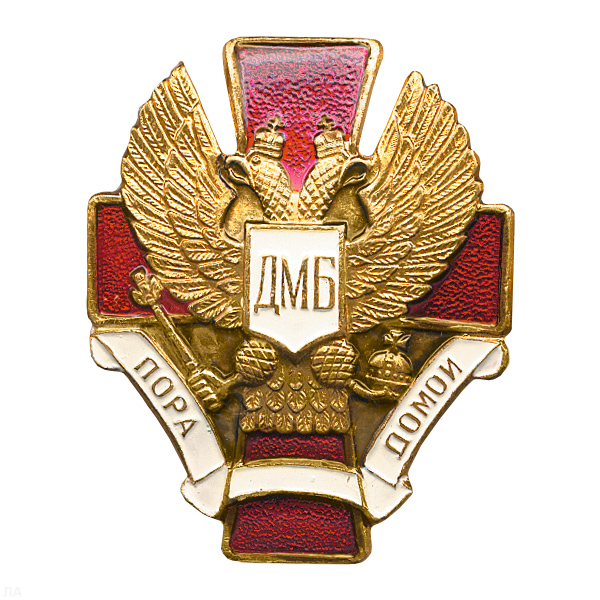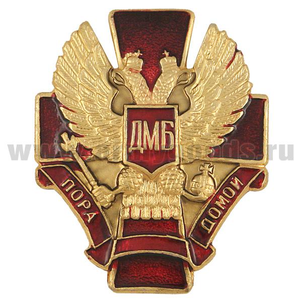 Значок мет. ДМБ пора домой (красн. крест. с красн. лентой)