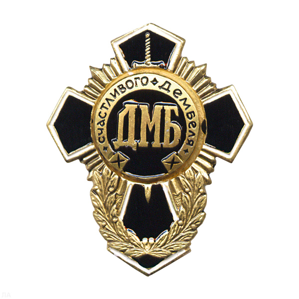 Значок мет. ДМБ счастливого дембеля (черн. крест)