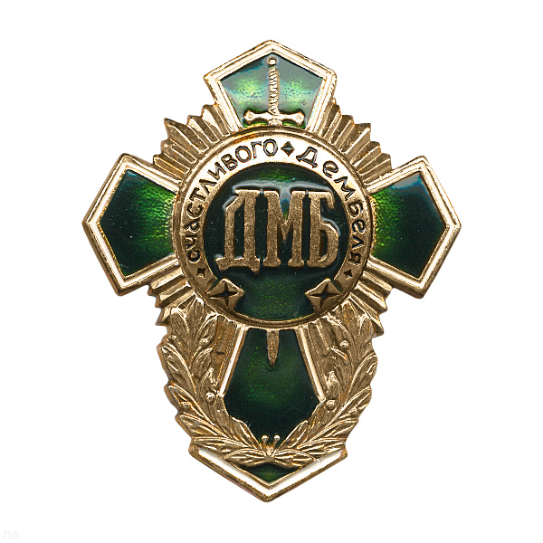 Значок мет. ДМБ счастливого дембеля (зел. крест)