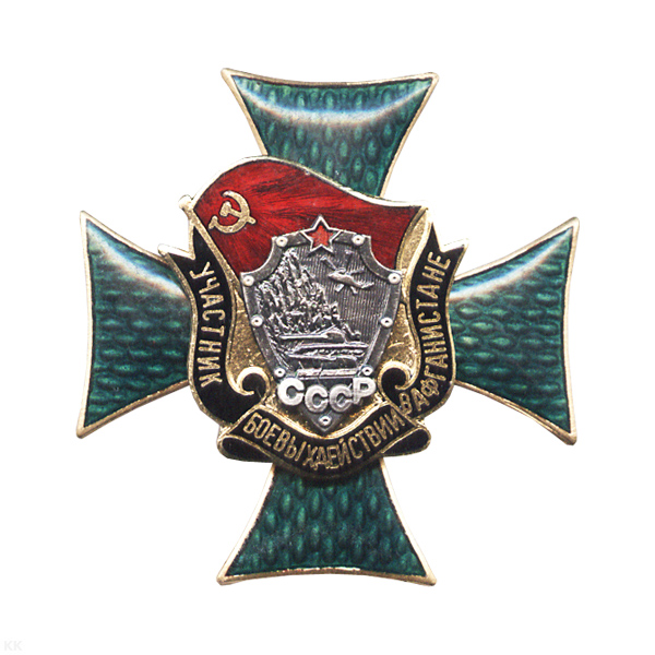 Значок мет. Участник боевых действий в Афганистане (зел. крест, СССР) гор. эм.
