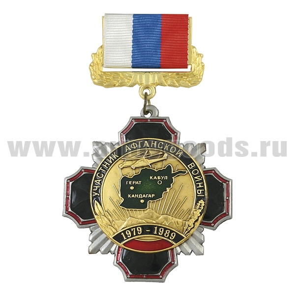 Медаль Участник боевых действий в Афганистане (зел. крест) (на планке - красн. бант) гор. эм.
