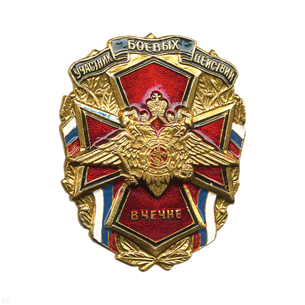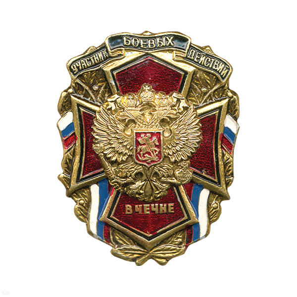 Значок мет. Участник боевых действий в Чечне (с орлом РФ)