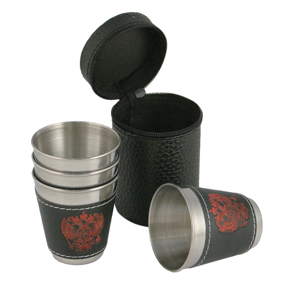 Стопки мет. (4х50 мл) в чехле (орел РФ/ герб СССР/чистые)