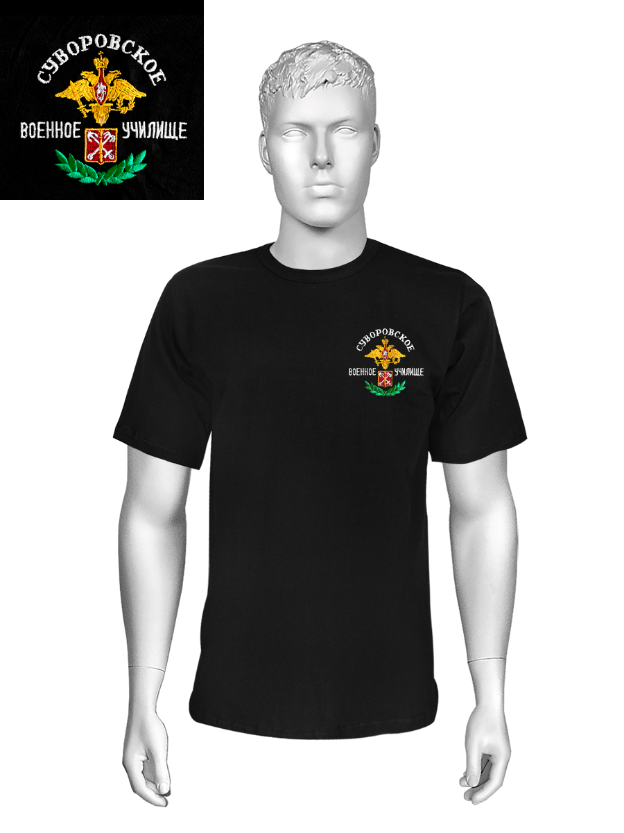 Футболка с вышивкой на груди Суворовское военное училище, черная