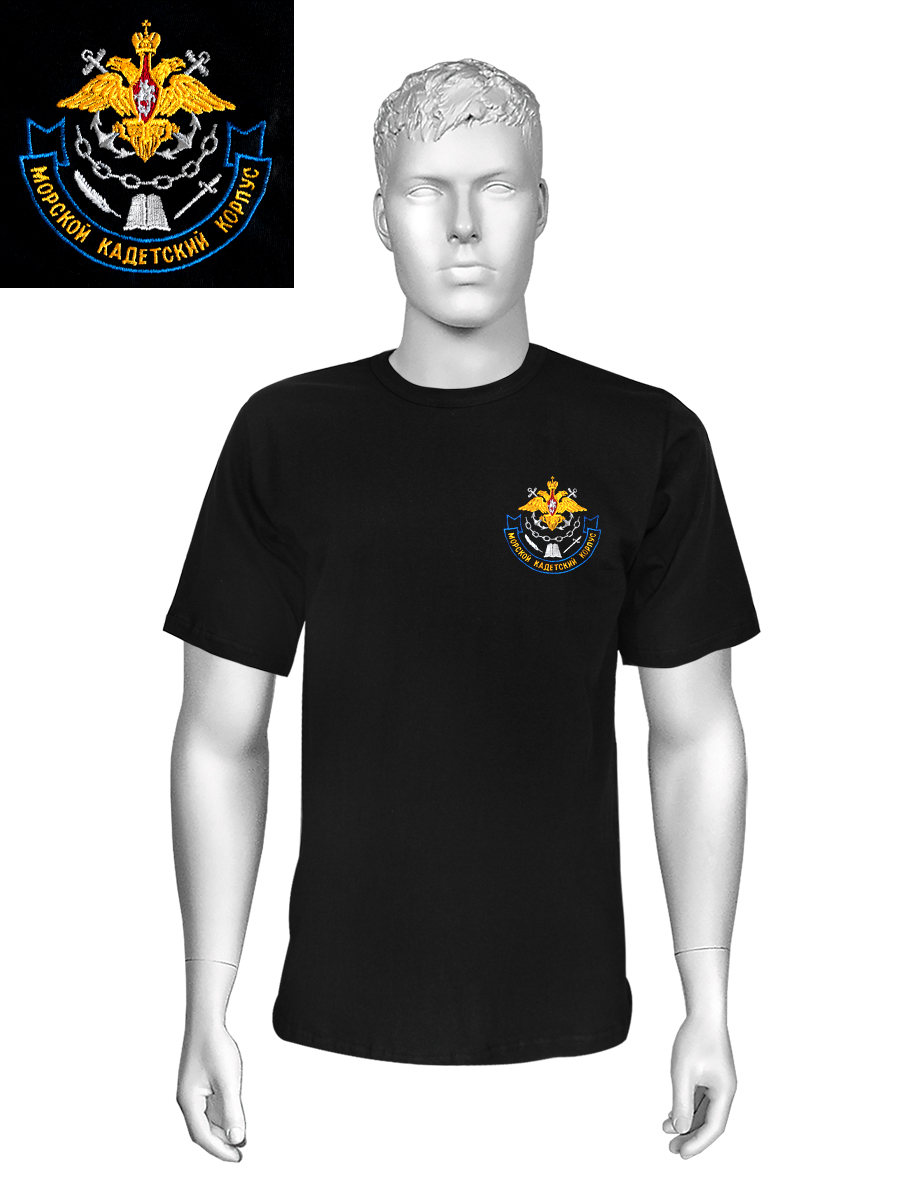 Футболка с вышивкой на груди Морской кадетский корпус, черная