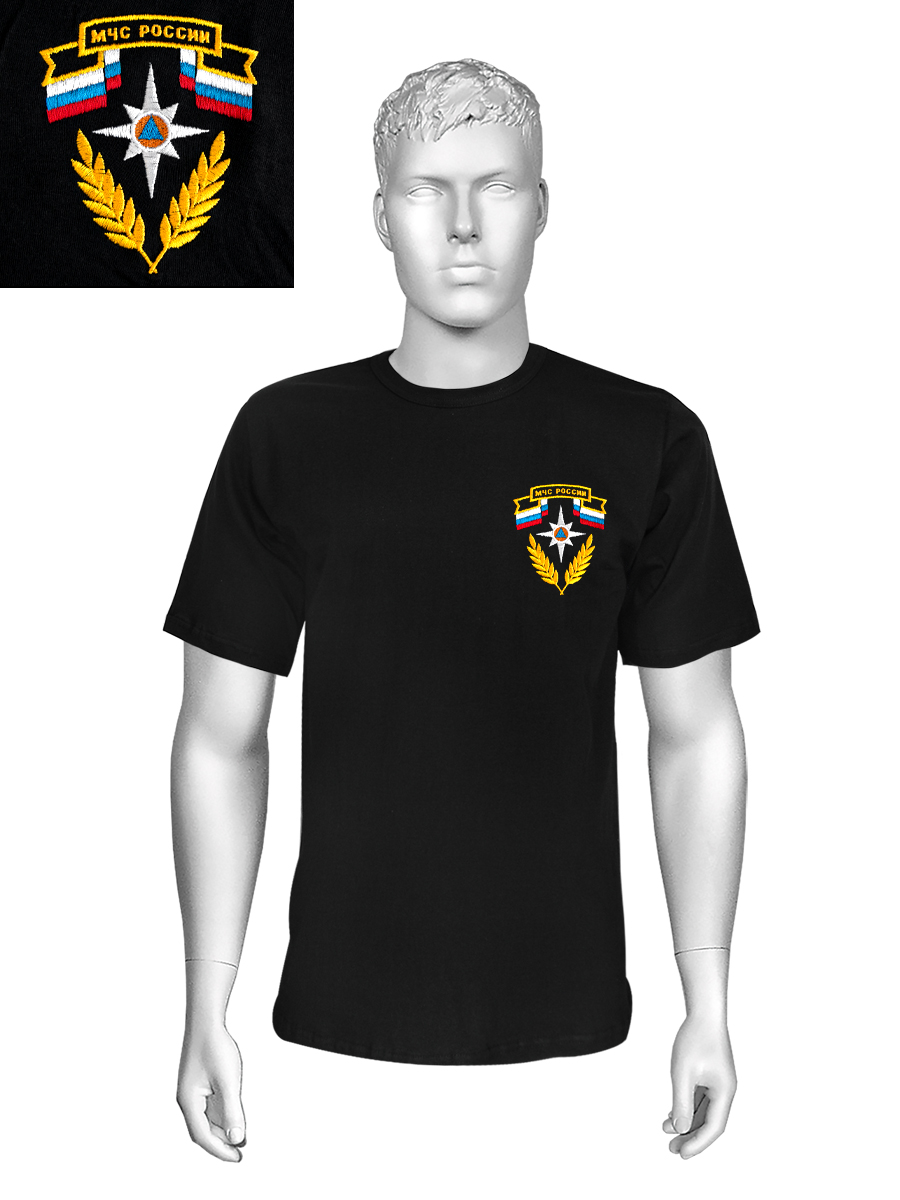 Футболка с вышивкой на груди МЧС России Emercom, черн.