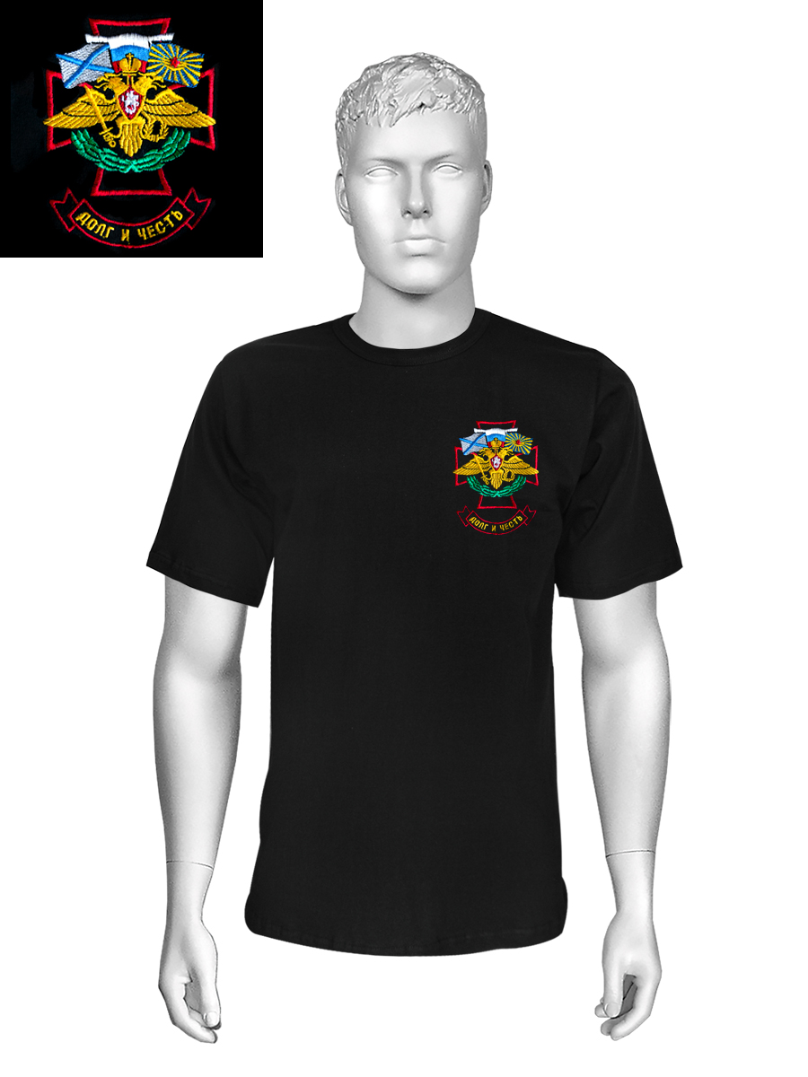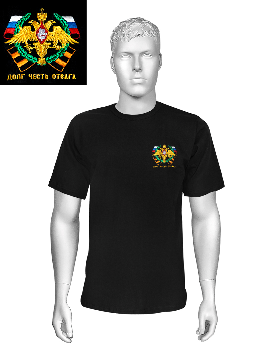 Футболка с вышивкой на груди Долг Честь Отвага, черн.