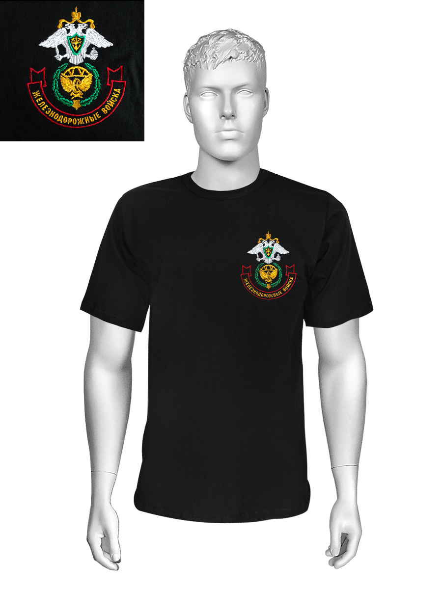 Футболка с вышивкой на груди Железнодорожные войска, черн.