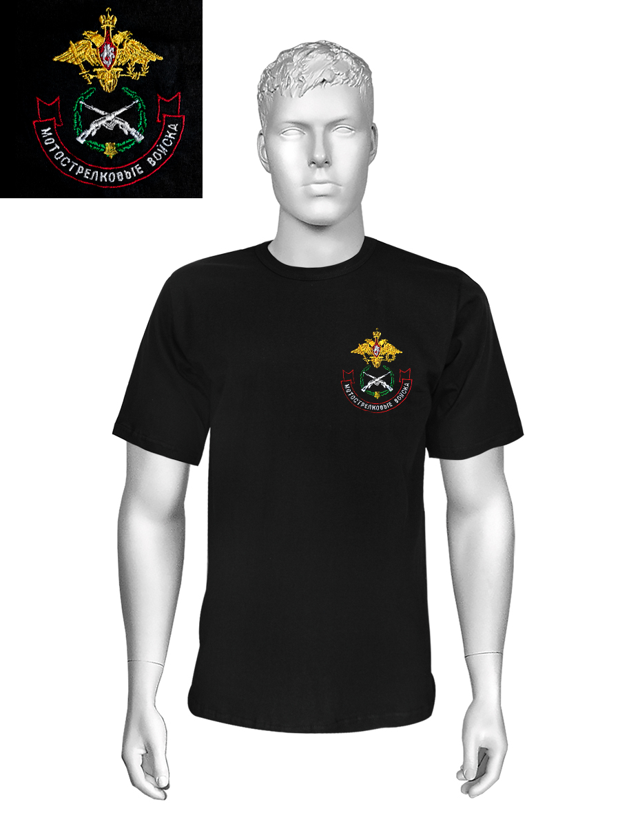 Футболка с вышивкой на груди Мотострелковые войска (эмблема), черн.