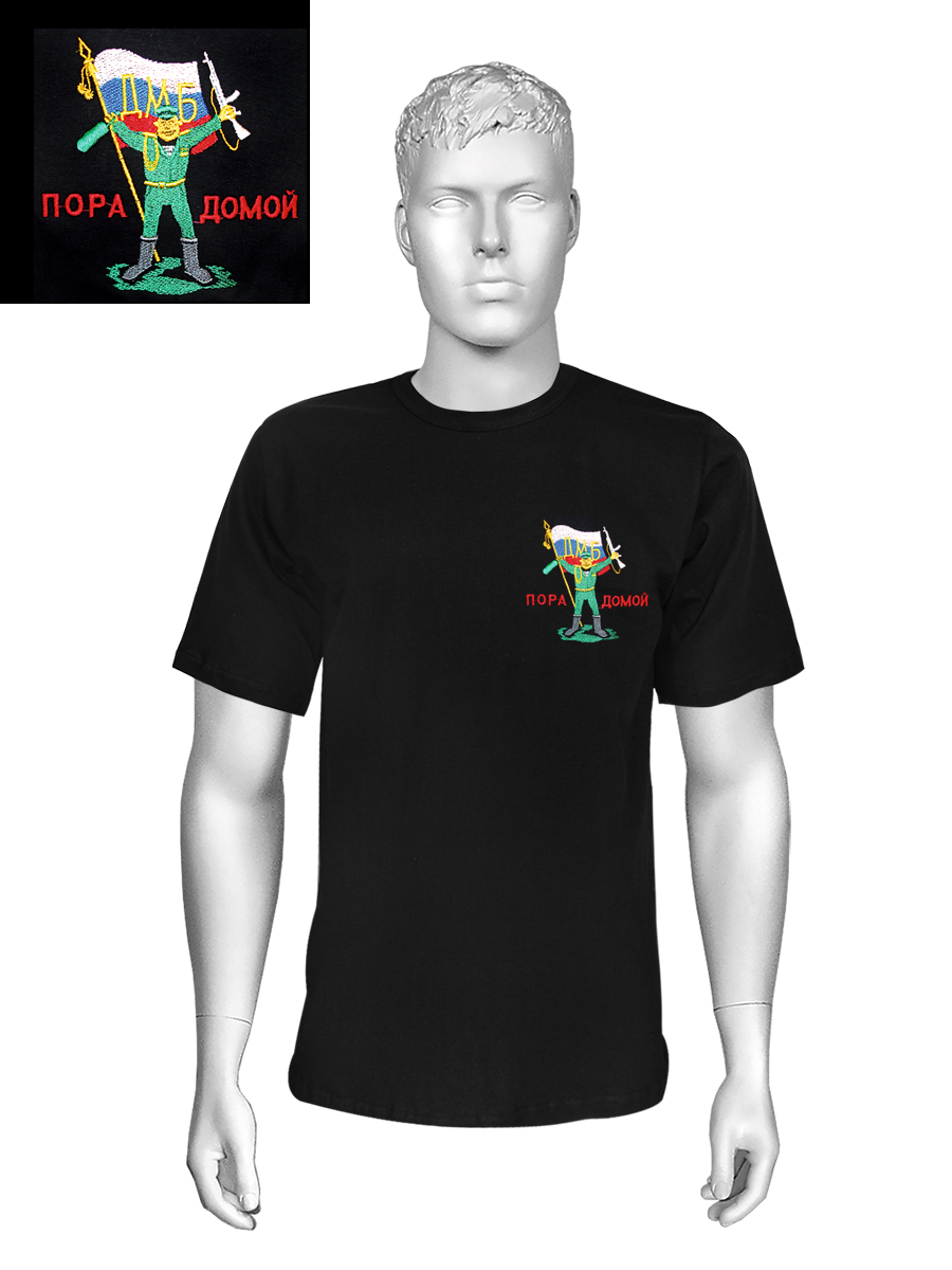 Футболка с вышивкой на груди Пора домой ДМБ (солдат) черн.