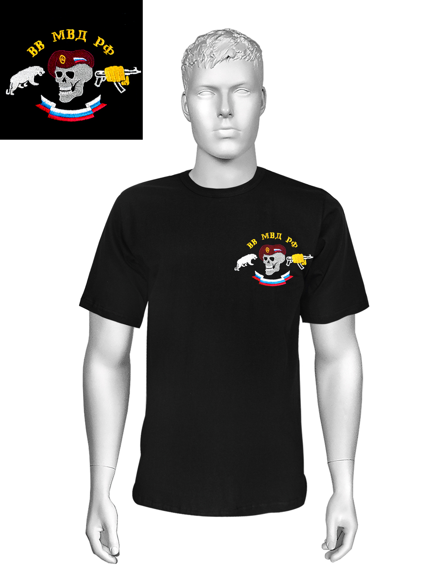 Футболка с вышивкой на груди ВВ МВД РФ (череп) черн.