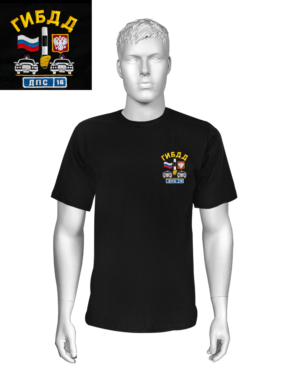 Футболка с вышивкой на груди ГИБДД ДПС-16, черн.