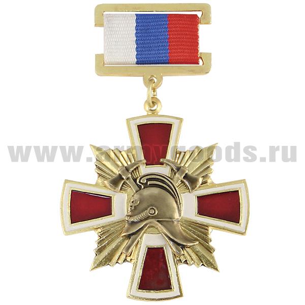 Медаль ГПС (крест с лучами и каской ГПС) (на планке - лента РФ)