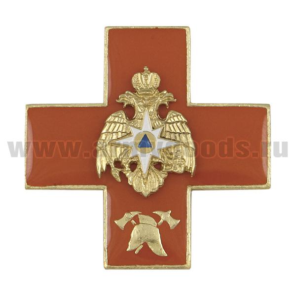 Значок мет. (красн. крест с эмбл. ГПС, заливка смолой, с накладным орлом МЧС)