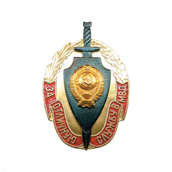 Значок мет. За отличную службу в МВД (с гербом СССР) 2 накл., гор. эм.