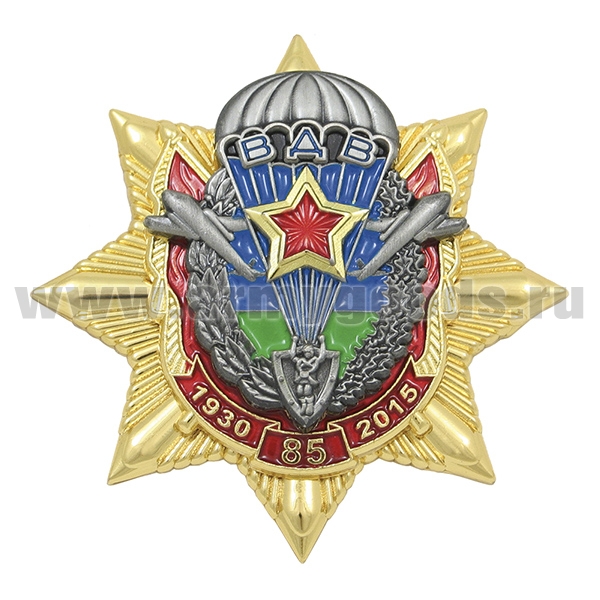 Значок мет. 85 лет ВДВ 1930-2015 (эмблема ВДВ со звездой в венке со знаменами на звезде, 3 накладки)