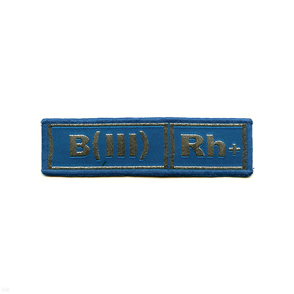Нашивка на грудь тканая Гр. кр. B (III) отрицат. (голуб. фон)